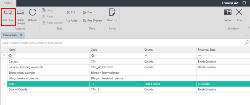 To add a holiday, select Add Row.