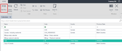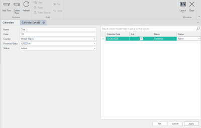 Complete the fields for the calendar. Enter a name, code, country, state and status.![]()