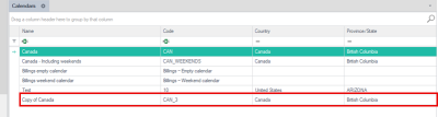 A copy of the calendar is shown in the list. Double-click in the row for the calendar to open it and make changes.