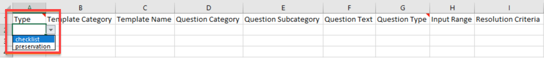 In the Type column, specify the applicable checklist type by selecting the Type drop-down.