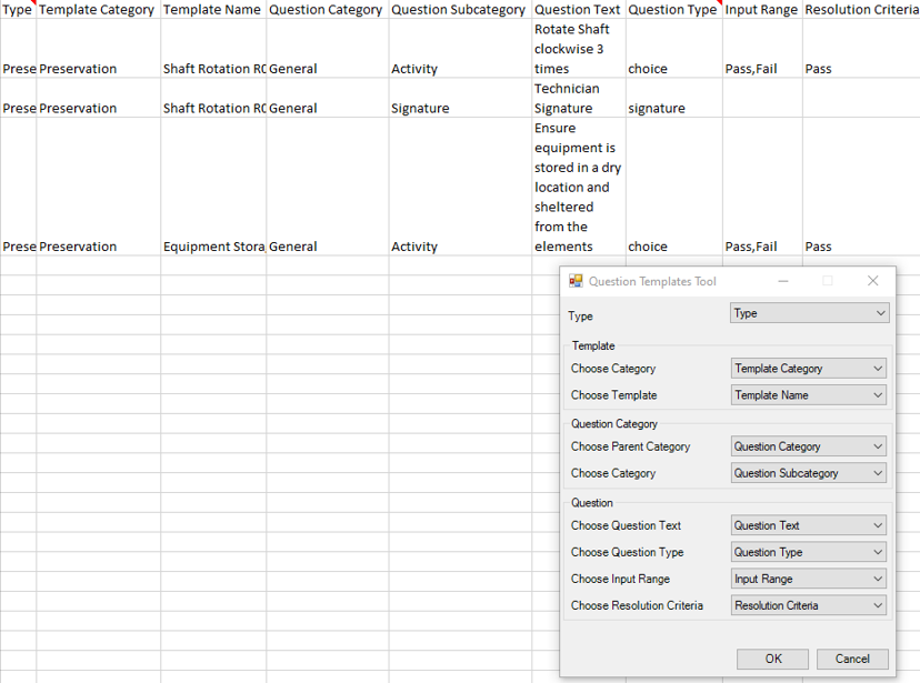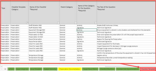 Enter the values from the Checklist Template tab in your Config Book into the Question Template worksheet.