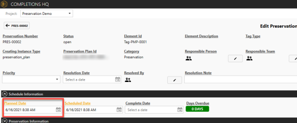 For another example, the equipment is moving from a 3-month to a 6-month frequency cadence. If the activity for the first month was completed under the previous plan, then the new plan date needs to reflect a completed date 5 months out. The old plan is then abandoned.