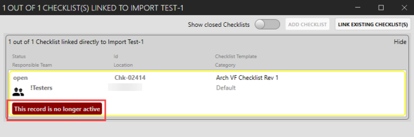 Updating attachments on closed checklists – A file with the same name no longer overwrites an existing file with the same name. The new file name is now appended with a number similar to the functionality in Windows.