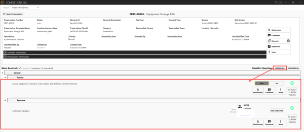 Preservations module (desktop and mobile) – The new Preservations module lets you schedule preventative maintenance tasks for elements. Preservation checklists can help ensure that an element’s warranty remain intact through construction and commissioning and provides a history of maintenance tasks.