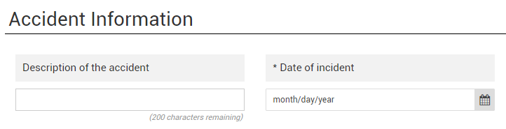 Some items require free-form data entry such as Description of the accident. Others require selecting a time or date.