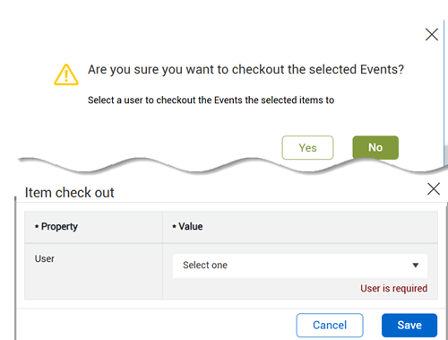 2. A dialog box will ask if you are sure you want to check out the selected events, click Yes to select a user to checkout the event to.
