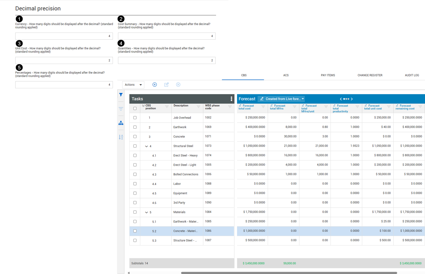 The Required cost items feature lets you create standardized or most commonly used cost items at the organization level and then add them to the project structure in the CBS register.