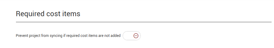 You can turned to ON the Prevent project from syncing if required cost items are not added toggle to prevent the project from syncing if required cost items are not added.