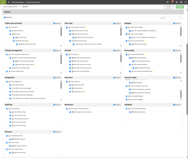 A role in InEight Platform is defined as the function that a user occupies inside an organization or project. A role contains a set of predetermined authorizations and permissions. When a role is assigned to a user, they acquire all the permissions of that role in the project or organization that you can assign to users or project staff.