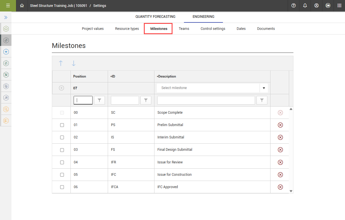 You can define completion milestones in the Engineering module to assign to claiming scheme steps. Examples of completion milestones might be Issue for Review or Issue for Construction.