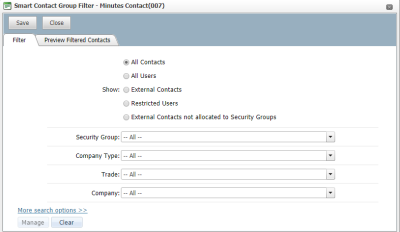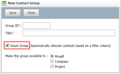 Define the required filter from the options available to automatically add contacts to the smart contact group.