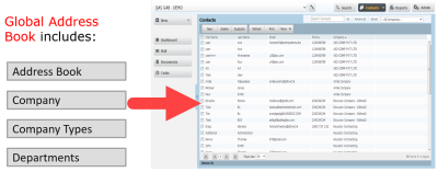 All three elements of the Address Book (company types, companies and contacts) are integrated with the Global Address book.
