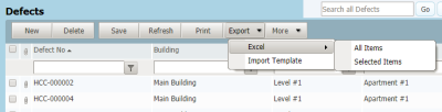 The export tool allows you to export all items or only selected items from the Defects Register to an excel spreadsheet, which displays the metadata against each defect.
