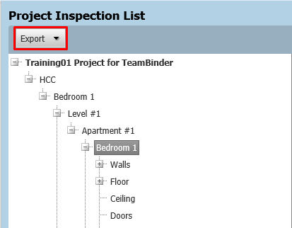 To export a generated Project Inspection List, within the Inspection List select the Export button.