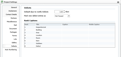 Rank Captions allows the Primary Administrator to specify an alternate name for each of the Project Inspection List levels. This alternate name replaces the default name in all instances. This can revert back to the default name by deleting the assigned ‘Caption’.