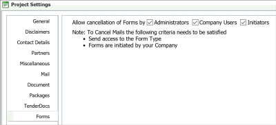 Administrators control the global settings for who is able to cancel a form via the Forms Tab within Project Settings.