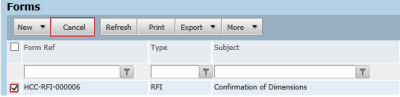 To be able to cancel a form the User needs: Full access to the Forms module; Send Access to the Form Type; and for the Form to have been initiated by their company.