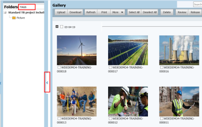 Project Gallery images can be stored in albums/ folders which can be easily accessed via the left hand side of the register by expanding the folders section. Project Gallery provides a dynamically created folder structure based on “Tags” assigned against the images in the register.