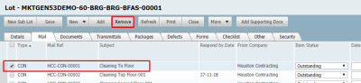 1. Select the items to be removed from the relevant section of the Lot (e.g. Documents).