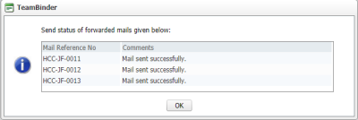 A confirmation window will be displayed with the list of new mail items that have been generated.