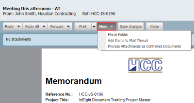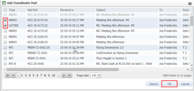 Mail can also be linked manually to other mail, documents, transmittals or other InEight DOC module items.