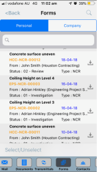 Tap the Form you wish to view. If a user has access to company forms, then the Personal/Company toggle will appear at the top.
