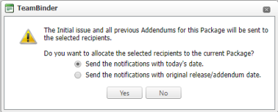 New Recipients will automatically receive the initial package and any addendums. Select the appropriate date option based on the current date or original dates at time of issue.