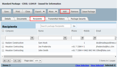 Click on the Recipients tab and then Add to select the additional Recipients.