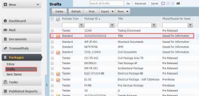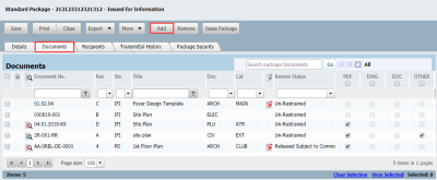 Documents must already exist in the Document Register and be released or un-restrained before they can be added to a standard package.