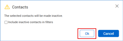 Click to confirm your selection. To include inactive contacts in filters, select the Include inactive contacts in filters check box.