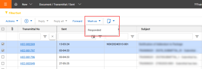 Mark transmittals as Responded in bulk – You can now specify that a response has been received for transmittals in bulk from the Transmittals Sent items page. The Mark as button has been added to the Sent items page, so you can select multiple transmittals, and then mark them as Responded and enter a responded date. Read more