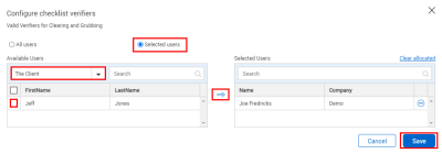 1. Select the company, then check the users to be listed as verifiers. Click the button to add them.