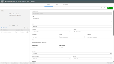 This is a typical scenario when a vendor or subcontractor submits documents to the head contractor. The document remains in an unprocessed state until it is reviewed and processed from the Holding Area.