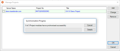 The Synchronisation Progress bar pops up providing progress of each module.