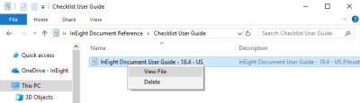 From within Published Reports folder: Right click on the document and select View File. This opens the item in the default native application.
