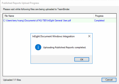 Upon completion, users receive a pop up message confirming items have been uploaded successfully.