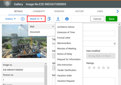 Project Gallery images can also be attached (rather than linked) to the items in the following InEight Document Modules: