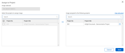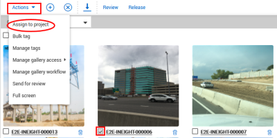 From the Gallery Register, , select the required image, then click the Actions button and select Assign to project.