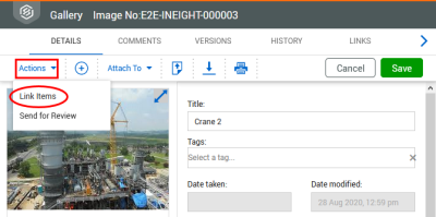 Linked items will be visible against the image in the Links tab in separate sections by Module.