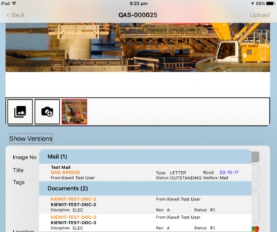 Using the iOS app, if the image is linked with items from other modules, these details will be visible against the image.