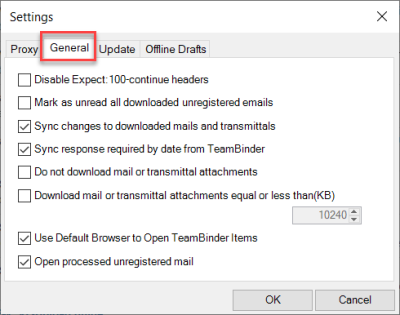 Disable Expect: 100-continue headers – Enable this option to fix connection issues between InEight Document Outlook Integration and the InEight Document server caused by the 100-expect-continue and keep-alive headers.