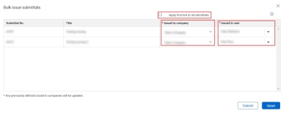 Summary: You can issue submittals in bulk when you have multiple submittals and you want to issue them in one action instead of individually.