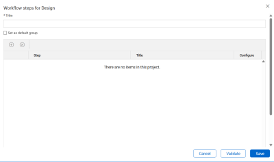 Click the Add icon. The Workflow steps dialog box for the submittal type opens.
