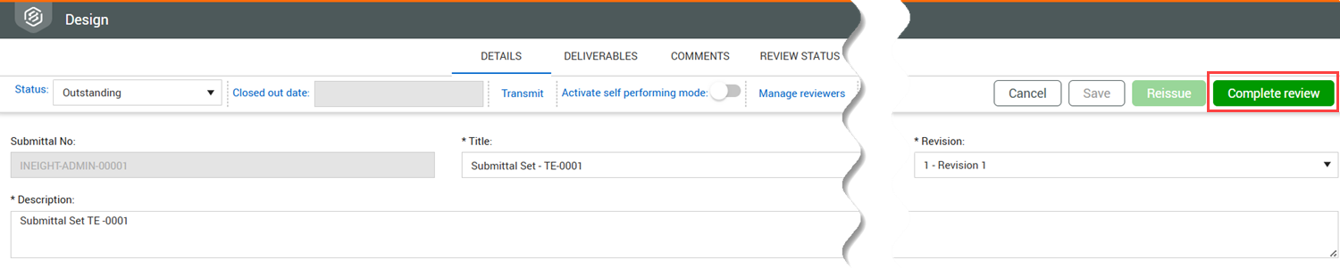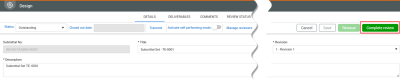 After you have viewed all deliverables, click Complete review. The submittal then advances to the next step in the workflow.