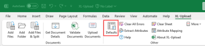If you are opening XL-Upload for the first time, the default settings window opens automatically. You can also open this window by clicking Defaults from the XL-Upload menu.