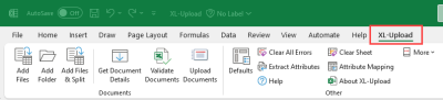 Open the XL-Upload application located on your desktop. This opens an empty work sheet with a new XL-Upload menu.
