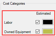 Under the Cost Categories section, check the Estimated checkbox for the Labor and Owned Equipment categories.