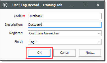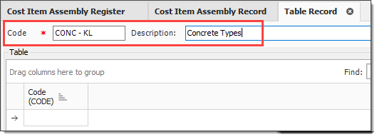 Cost Item Assemblies are created by entering a code and description for the assembly. Both fields can be changed at any time.