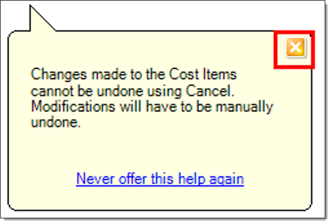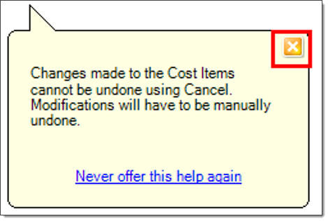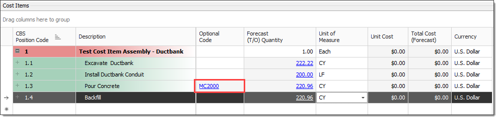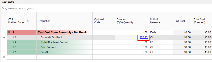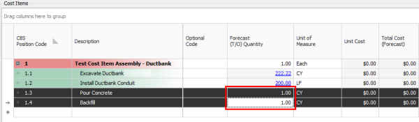Expand your Cost Items window so that you can see all the cost items.