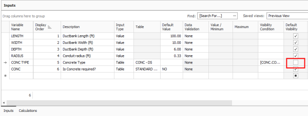 If you want to see all the inputs in a Cost Item Assembly even if their conditions are not currently evaluating to True, you can click View in Cost Item Assembly Inputs, and then select Show Hidden Inputs. This will display all the conditional inputs for the Cost Item Assembly